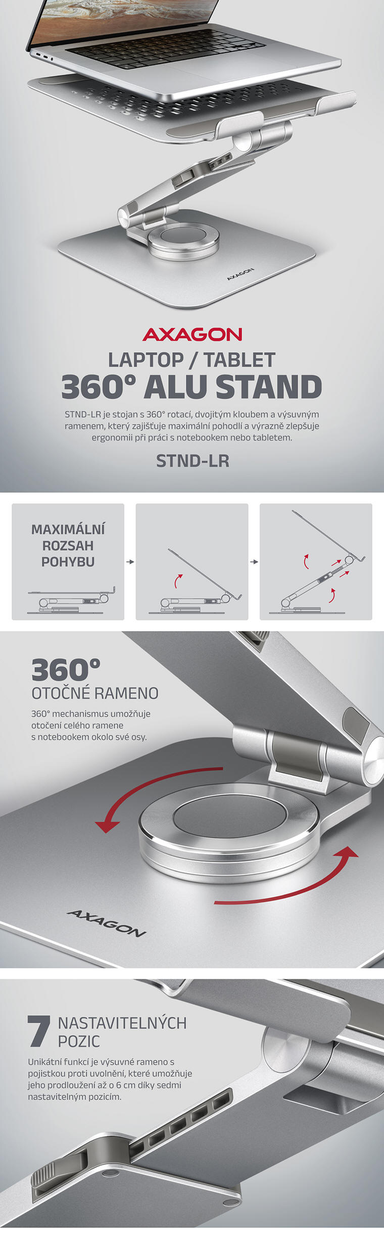 AXAGON - hliníkový stojan s rotací